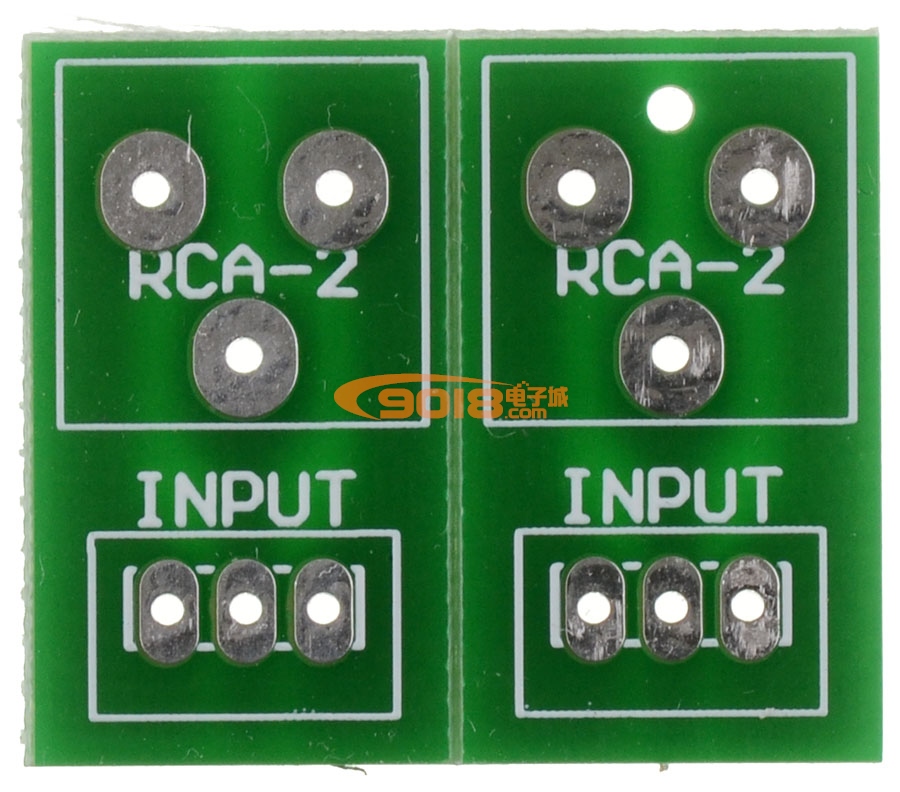 雙面板,厚1.6mm,雙面焊盤鍍錫,可安裝焊接2位或4位RCA插及及一個(gè)3P-XH2.54針座。