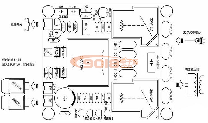 甲類電源延時(shí)軟啟動(dòng)溫度保護(hù)板