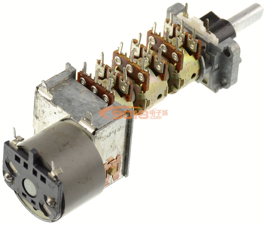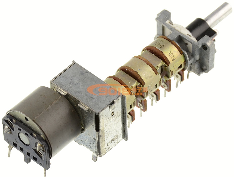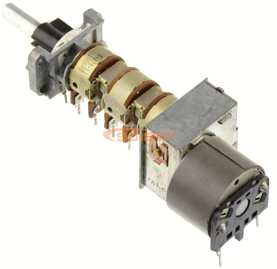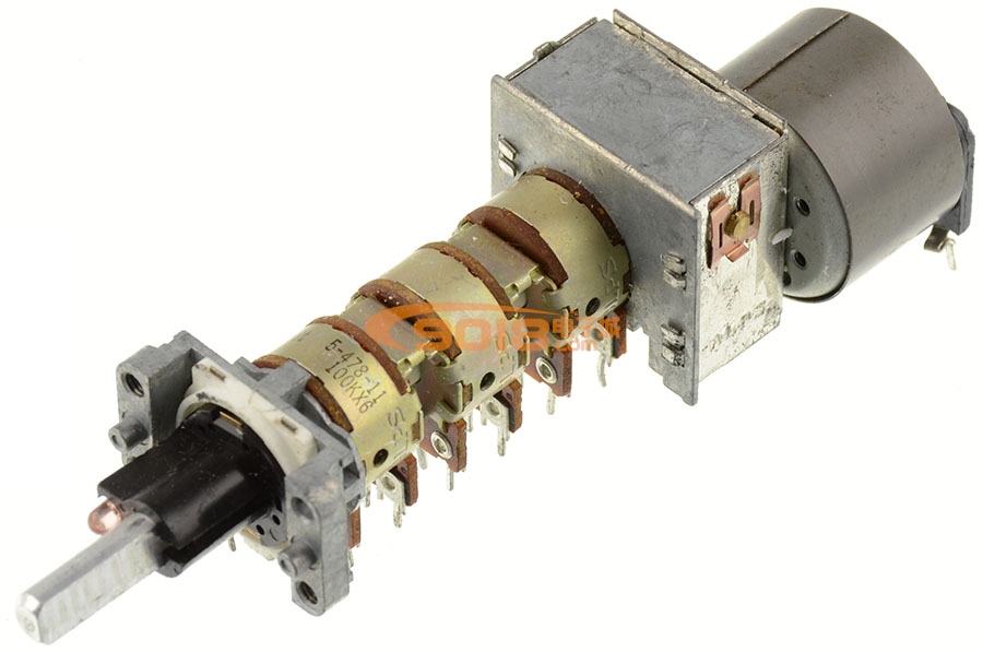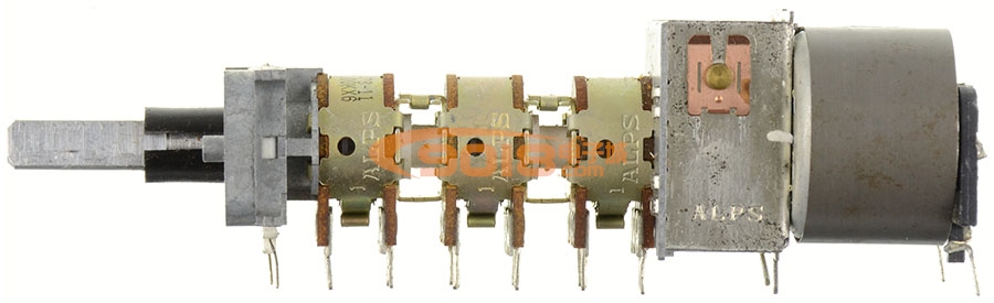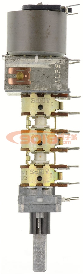 日本ALPS 6聯(lián)X3腳,帶指示燈,半圓軸,軸長(zhǎng):25MM,100K10AX6