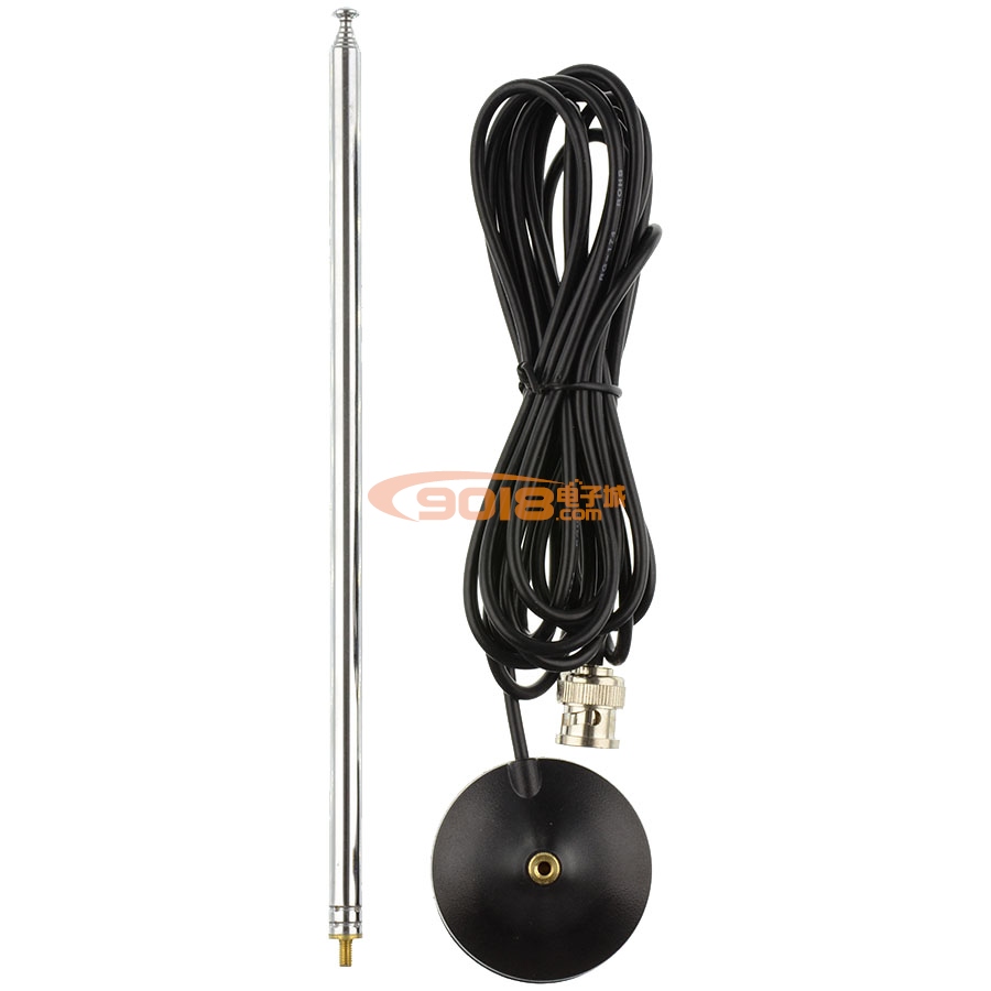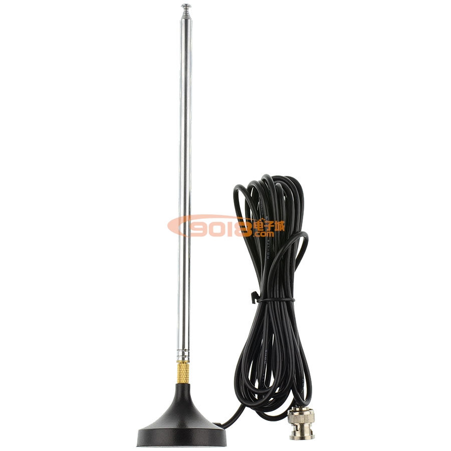 本天線適用于調頻發射機、調頻無線話筒、對講機、調頻接收設備等通信設備,有效增加發射機的發射場強,提高調頻接收機的靈敏度!方便將發射機或接收機的天線移動至室外、車外、陽臺或靠窗,更加有效地發射和接收電磁波!本品配有3米饋線(另有5米可選點擊購買),帶Q9(BNC)插頭,收縮時長度僅23CM,最大長度可拉伸至110CM,可覆蓋65-320MHz頻段(需根據頻率自由拉伸天線長度,天線長度為1/4波長,計算公式:天線長度=300/MHz/4,如100MHz即天線長度為0.75米)。天線底部是一個強磁力吸盤,可緊密吸附于汽車車頂、或金屬物體上。