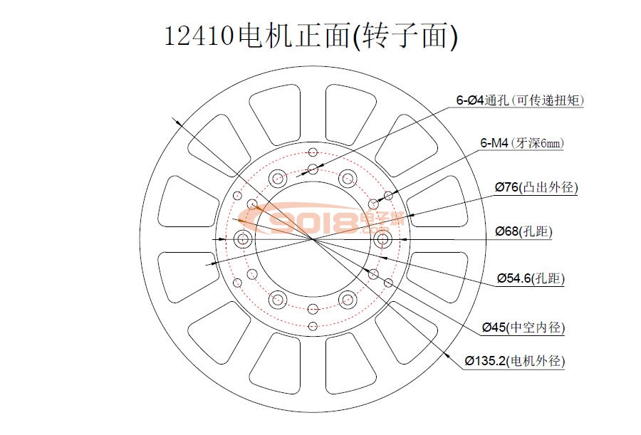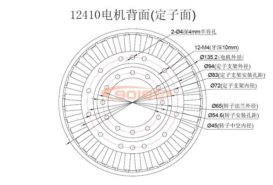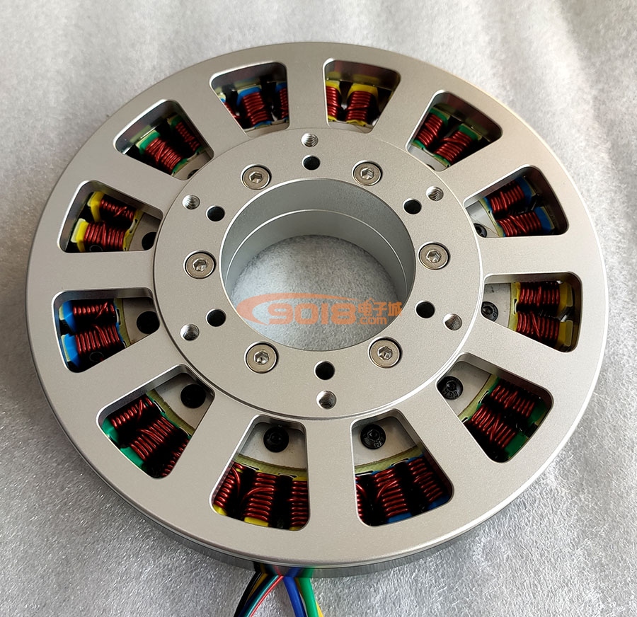 本電機采用一顆國產大直徑滾珠軸承連接定子和轉子,結構簡單可靠,可承受徑向、軸向及來自各個方向的傾覆力負荷,確保電機持久運行。因產品尺寸較大,受限于外殼加工精度、軸承精度等原因,可能導致電機在運轉過程中出現(xiàn)不同程度的振動、脈動、異響等問題,請盡量將定子固定于剛性較好的金屬支架上,此類問題并非質量問題,本司不予受理此類售后申請。本電機槽極組合為36槽40極,其繞組利用率高,磁勢聚合度高,電磁轉矩大,可最大限度提高電機綜合性能。定子鐵芯沖片采用霍爾嵌入式定位設計,使霍爾元件能夠準確地測量轉子位置,令三相繞組無刷換向更為精準,確保電機正反轉性能一致。
