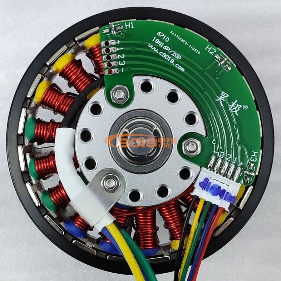 本品采用標準磁路設計,外殼與定子構成磁通回路有效地提升電磁轉矩,加上優秀的極槽組合,最大限度提高電機綜合性能。定子采用霍爾嵌入式定位槽設計,使霍爾元件能夠準確地測量轉子位置,令三相繞組無刷換向更為精準,確保電機正反轉性能一致。特別注意:本品未經細致的動平衡矯正,電機在高轉速區間可能會有振動,出貨時盡量降低振動值,但無法提供具體的動平衡測試數據。