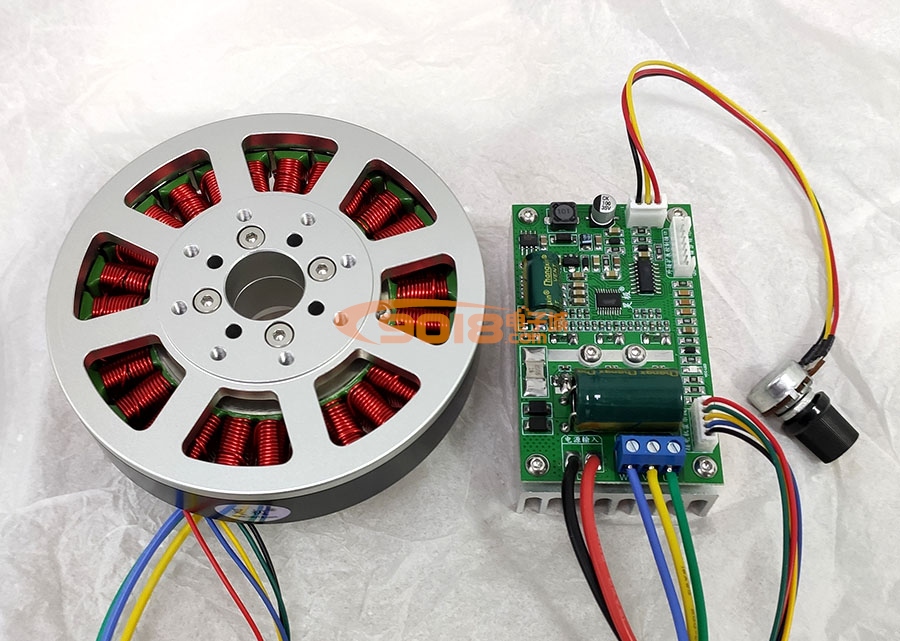 此產品未經過長時間連續運行測試驗證,定子繞組也未作浸漆等常規工藝處理,故我司不對用戶的具體應用負責,懂行的客戶可根據電機尺寸建立有限元模型進行物理載荷分析,以確保電機是否適合自己的需求,產品本身不提供免費售后質保,請根據自身工況酌情選用,留出足夠的功率余量,避免電機發生故障損壞,由我司工程師對用戶提供售后免費咨詢及產品相關技術支持。電機配套的驅動器可直接調速(電位器0~5V模擬電壓或PWM調速),僅供測試使用,不能保證長期穩定無故障運行,高功率負載工作時,請注意加強驅動器散熱,或者自行配備功率更大、功能更為完備的工業級驅動器(要求額定電流15A以上)。電機帶載工作時,其繞組線圈(銅損)、鐵芯(鐵損)、軸承(磨擦)均會發熱,三個熱源聚合后構成定子溫升,安裝時,請將定子基座緊密貼合于導熱性能良好的金屬支架上,必要時可在貼合面上涂上導熱硅脂,以充分利用金屬支架將熱量導出,降低溫升。本電機殼體為開放式結構,具備良好的自然散熱條件,若條件允許,可加裝散熱風扇輔助散熱,電機扭矩和功率還可以再度提升。綜上所述,本站已如實告知用戶使用此產品可能存在的風險與使用相關知識,一旦售出非質量原因概不予退換貨,不提供免費售后質保,購前務必知悉。