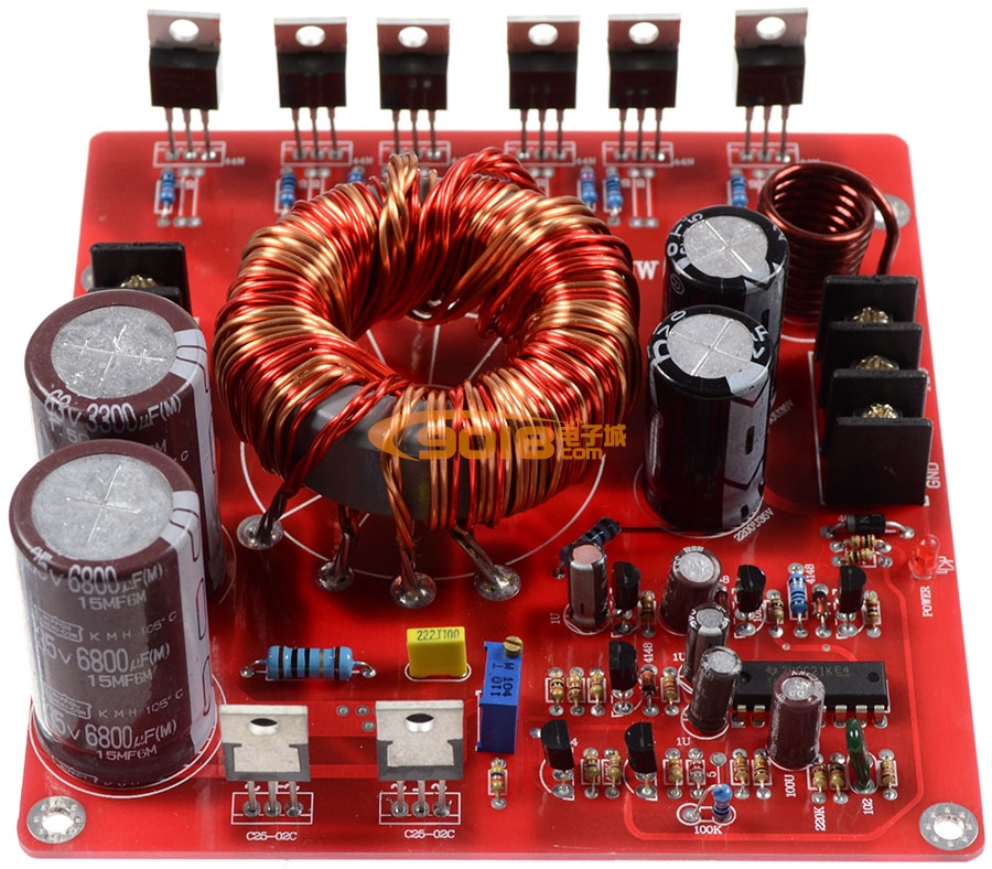 n主濾波電容采用進(jìn)口化工3300UF/50V*2個(gè),內(nèi)電壓最高可以達(dá)到65V,其他電容均采用臺(tái)灣名牌