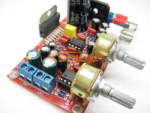 2.1 三聲道低音炮功放板,本套件采用原裝意法半導體ST品牌TDA7377音頻功放集成電路,前級和低音處理IC使用德州儀器出品TI品牌NE5532雙運放電路,整體音效低沉有力,中高音清晰分明。左右衛星聲道最大輸出功率2*12W,低音聲道最大輸出功率1*37W.套件單電源應用,推薦使用交流供電電壓10-12V,直流供電電壓12-15V,電流在3A或更大,音效會更好。兩個電位器分別為低音和總音量調節(本電路非傳統使用RC通過電位器來調節高低音頻率,電路上做了中高音處理,低音電路使用低通濾波器,不需要另外增加高音電位器),非常適合用在電源電路如汽車、摩托車、電動車及多媒體音響的改裝,提升您的音響音質。