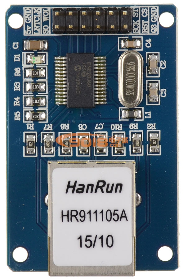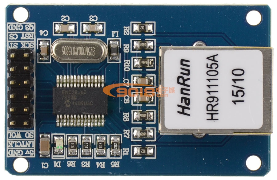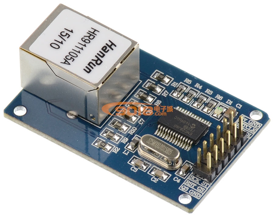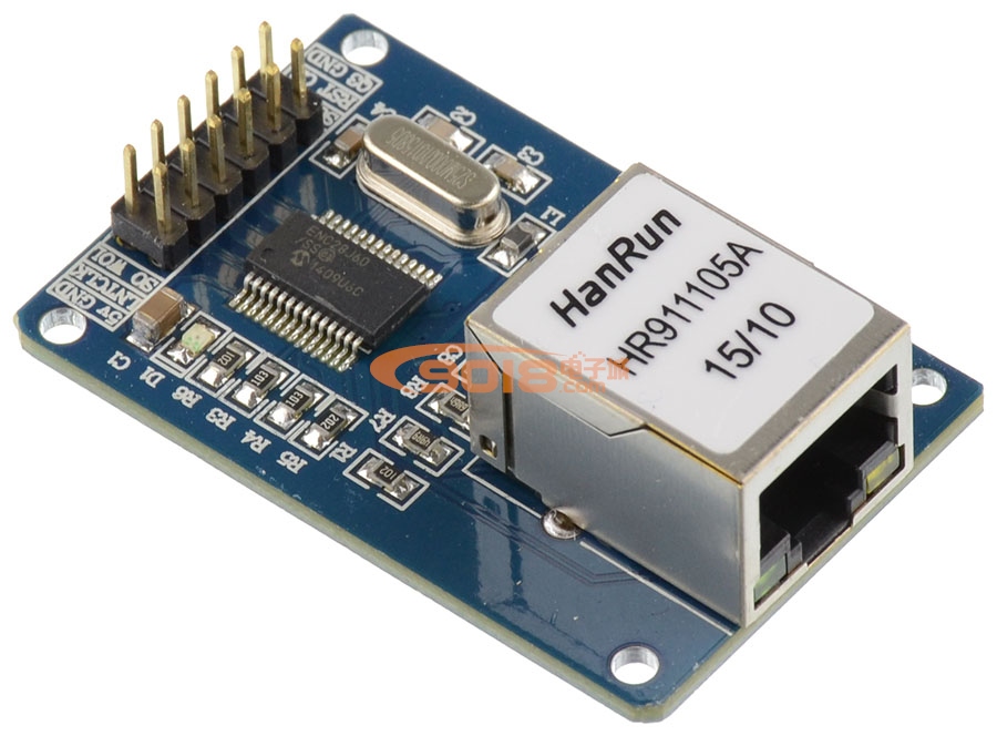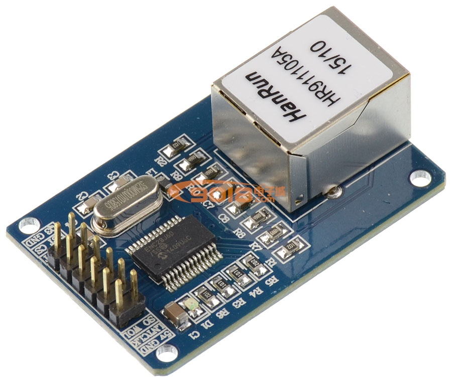 1、板載ENC28J60-I/SO芯片2、板載25MHZ晶振3、板載HR911105A網(wǎng)絡(luò)接口4、3.3V排針供電5、板子尺寸56(mm) x 34(mm)