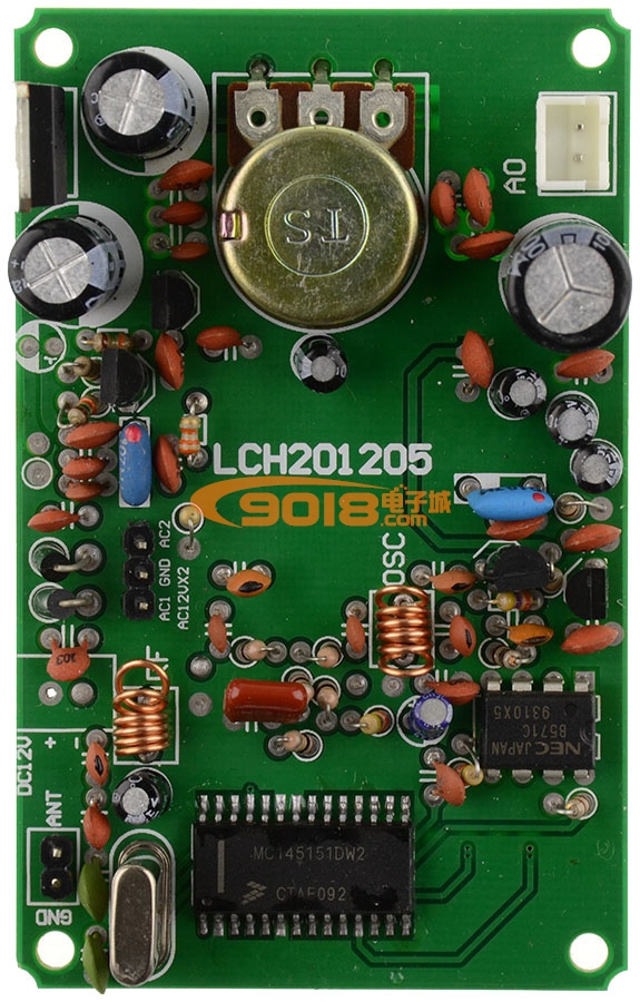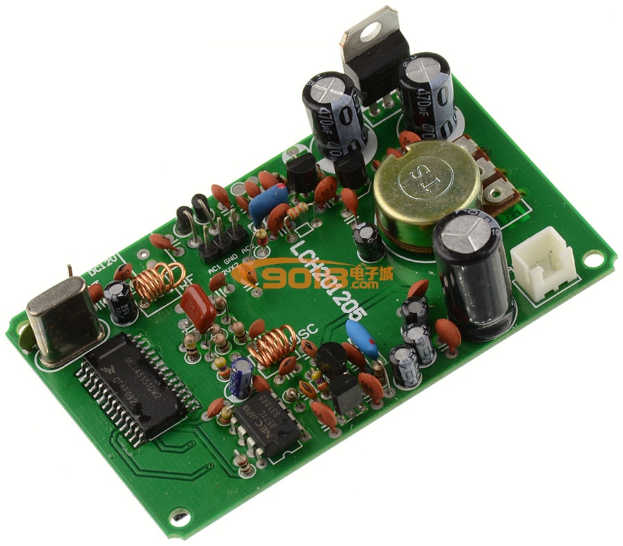 外形尺寸:80X50X20mm,工作電壓為直流12V,帶半波整流雙9-12V交流輸入接口(AC1,AC2焊盤),帶音量控制電位器,音頻輸出功率3-5W。本板頻率穩定,性能優越,適用于小區或校園調頻無線廣播系統。