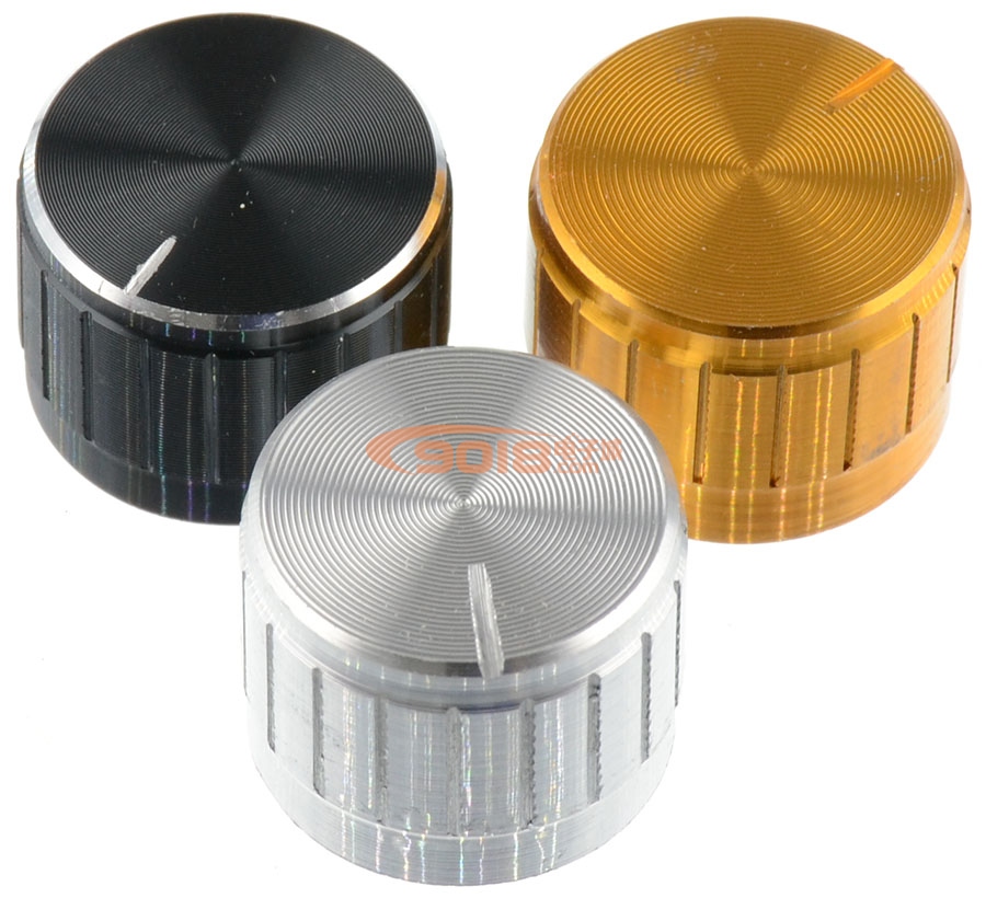 機箱面板/前級板/音調板等電位器旋鈕,可配花柄電位器。尺寸:直徑26MM*長17MM。顏色:金色