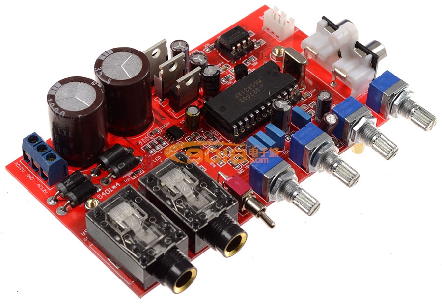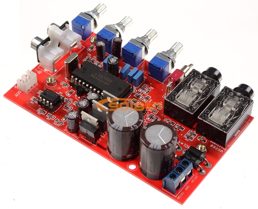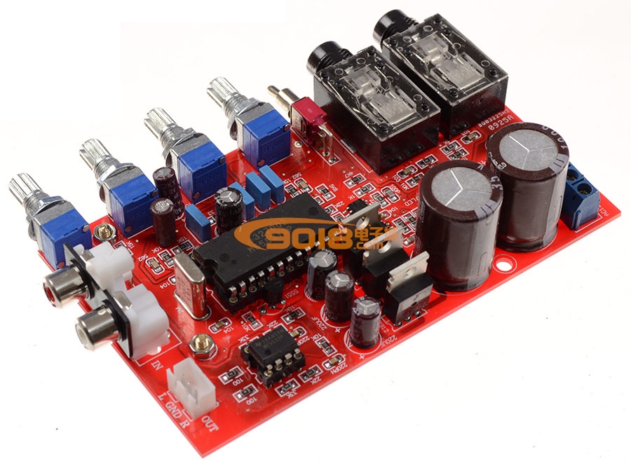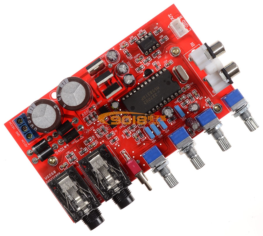 n OK輸入運放采用OPA275做放大,輸出用雙精度NE5532,卡拉OK核心采用三菱M65831,分析力好,聲音自然細膩,板上還設置有混響延時調節.