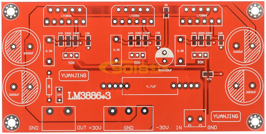 技術參數:工作電壓:±15V-±36V工作方式:純直流甲乙類輸出功率:150W輸入阻抗:47K輸出阻抗:4Ω-8ΩPCB板尺寸123mm X 31mmPCB板的厚度1.6mmPCB板的銅箔厚2安士,PCB板材料FR4