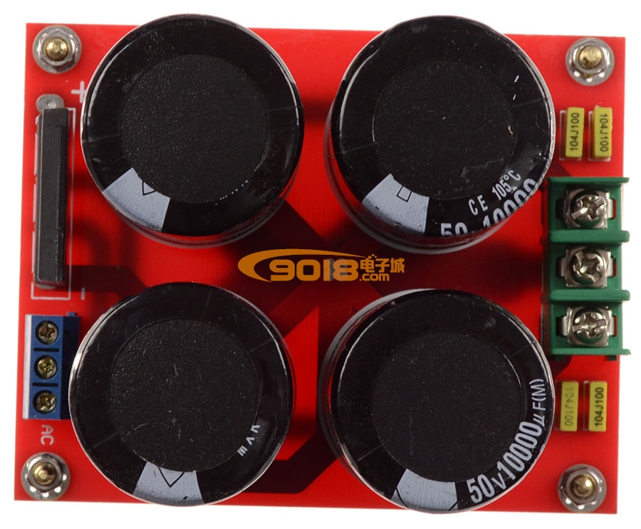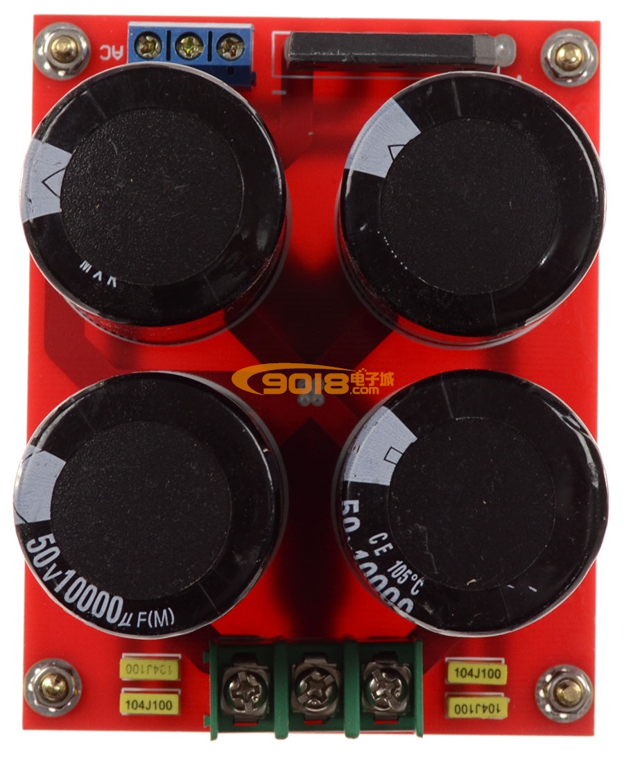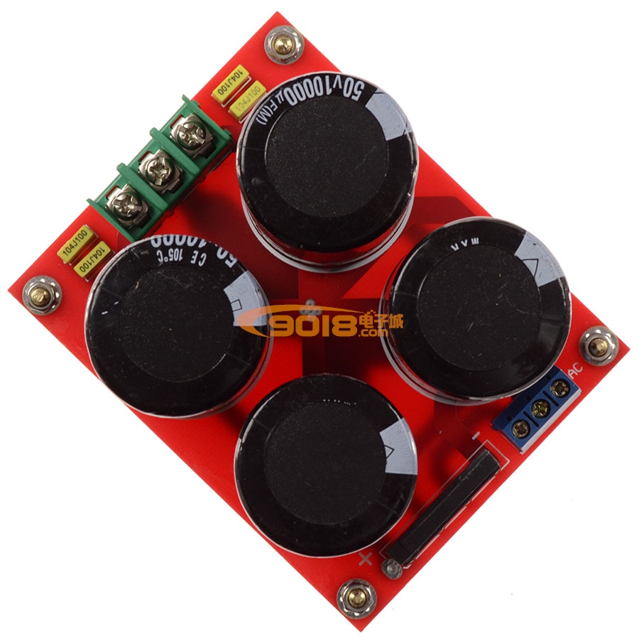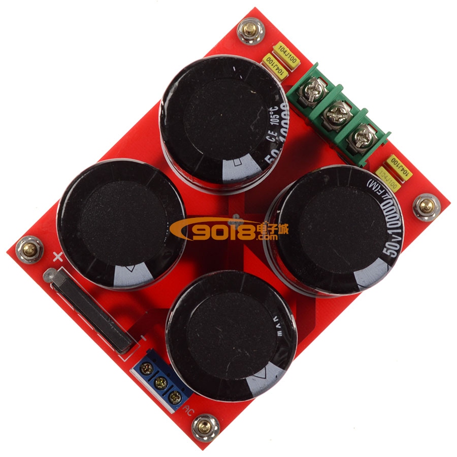 雙電源整流板,采用4只10000uf/50v大電解電容+6A整流橋堆,適用于LM3886、TDA7294、TDA7293等不帶整流的功放板配用。