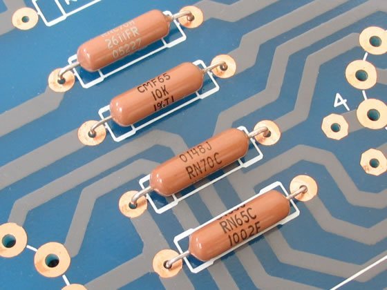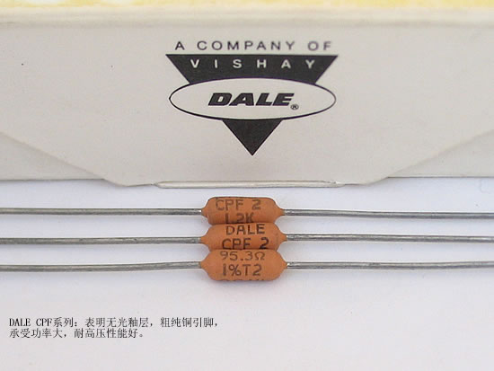 這是目前各Hi-End音響廠家使用普遍的「DALE金屬皮膜電阻」,擁有低雜音、低誤差1%、300V DC以上高耐壓的特性,接腳為純銅鍍錫結構,電阻外殼則為堅硬的精密陶瓷涂覆,不僅易于焊接,且兼顧了音質滿足大家的裝機需要。