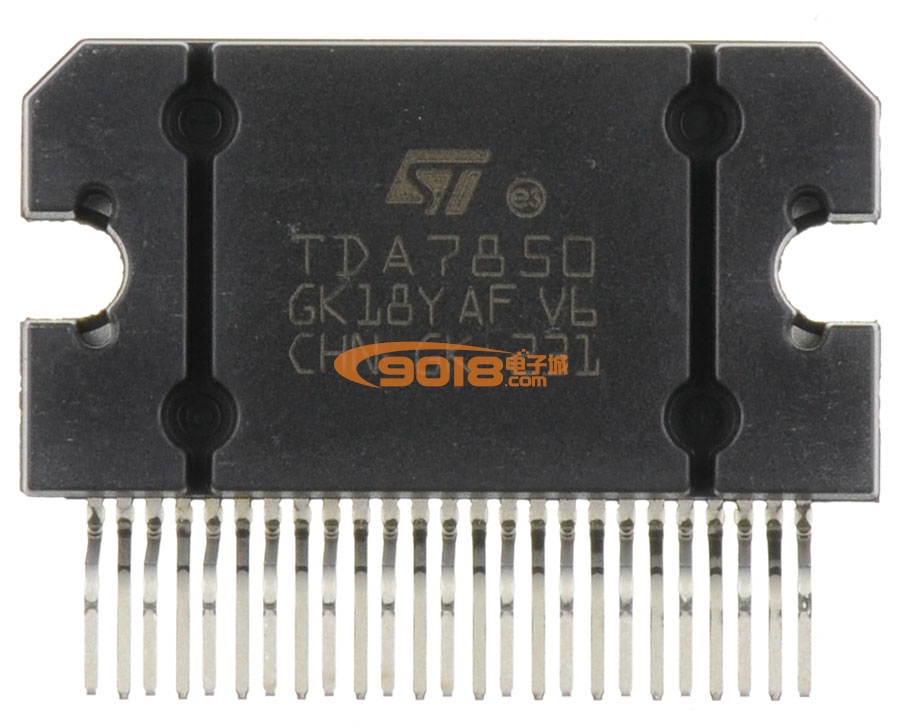 TDA7850是ST公司優質Hi-Fi汽車音響功放IC,采用單電源14.4V供電,MOSFET放大輸出,4x50W HiFi功放,失真小,低噪音,抗干擾能力強,具有AC,DC輸出短路和溫度保護,特別是功耗方面性能特別突出,超低功耗,工作穩定,音質極佳。