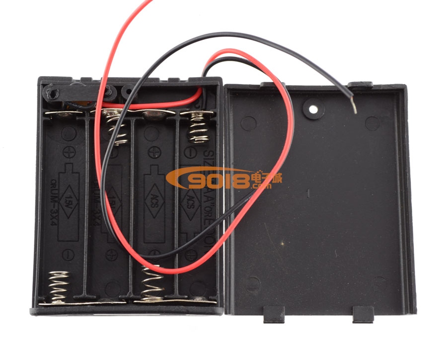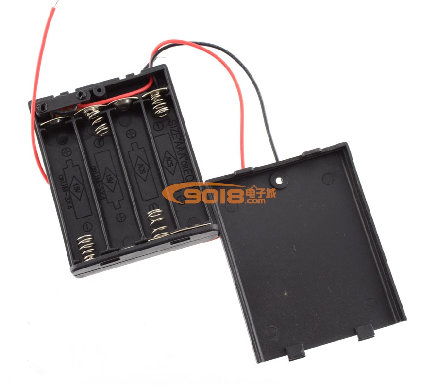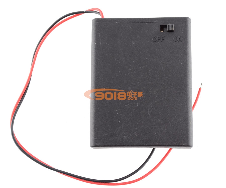 帶開(kāi)關(guān)的四節(jié)七號(hào)電池盒:可裝四節(jié)七號(hào)電池的電池盒,帶開(kāi)關(guān),有螺絲鎖緊盒蓋,有電源線輸出,線長(zhǎng)12cm左右。