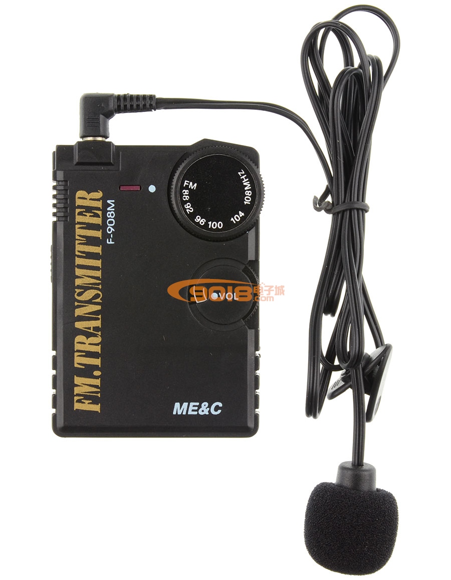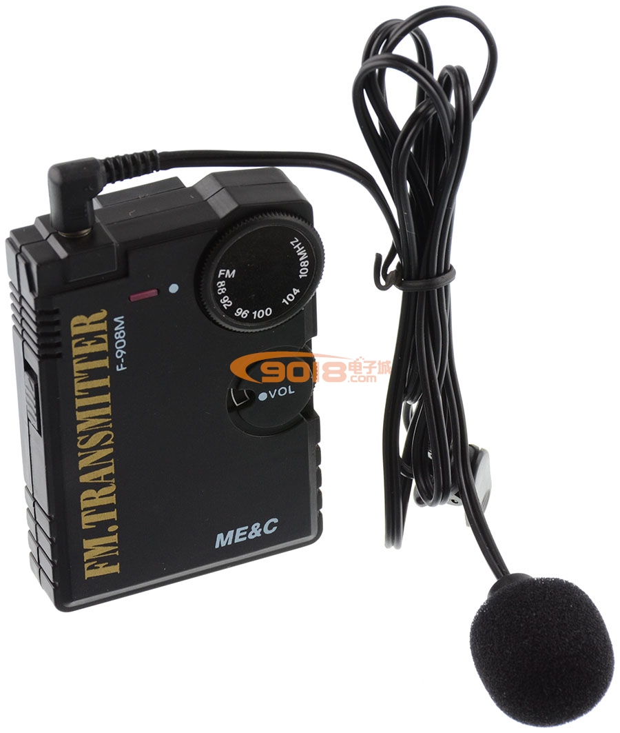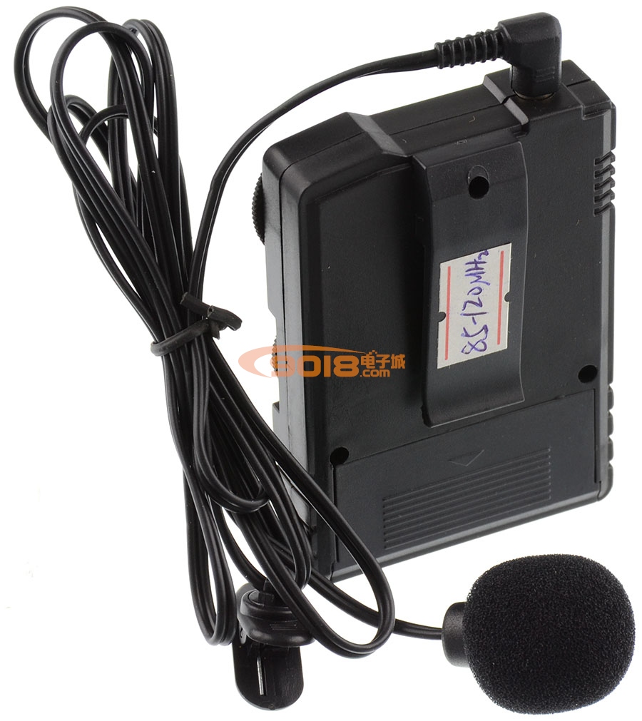 BP機式BA1404調頻立體聲發射器:該發射器體積只有BP機般大小,帶腰扣,外形尺寸不含天線為8X5.5X1.5cm,采用先進的導頻制調頻立體聲發射技術,內部電路采用BA1404集成電路,可外接立體聲音源,可外接配套的領夾式麥克風。立體聲音源插口可兼做外部領夾式麥克風插口。音頻傳輸線或領夾式麥克風線兼做發射天線,工作頻率連續可調,發射距離50米內,用2節7號電池供電。本品配套領夾式麥克風、3.5MM音頻線。