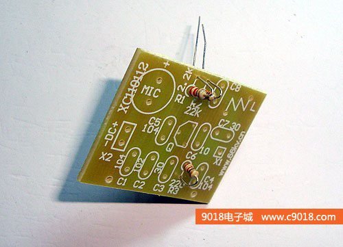 6、最后焊接駐極體話筒,焊接時(shí)要注意極性