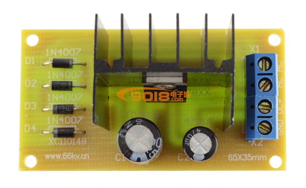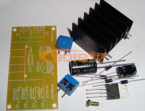 電路中D1-D4為整流二極管,C2、C2是濾波電容,安裝時一定要注意其極性。IC1是78系列三端穩壓器,輸出為正電壓。