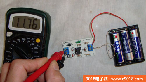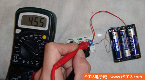 7、通電測試,這是輸入電壓,實際測量4.55 V(以下兩個圖是早期的采用阻燃板的電路)