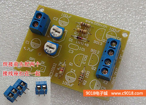 7、最后焊接音量電位器,到這里OTL分立元件功放套件就焊接好了