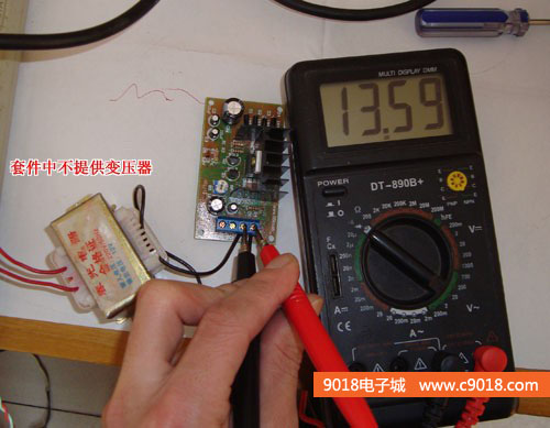 9、接上電源測(cè)試,用萬(wàn)用表測(cè)量輸入電壓為交流13.59V