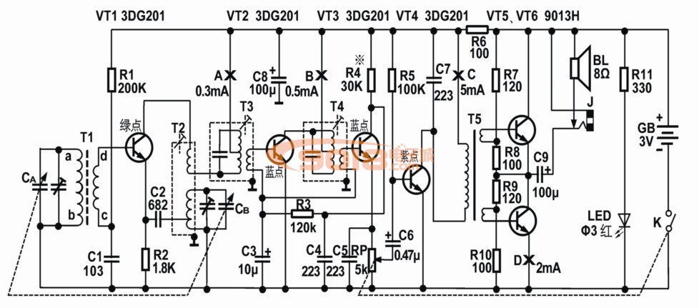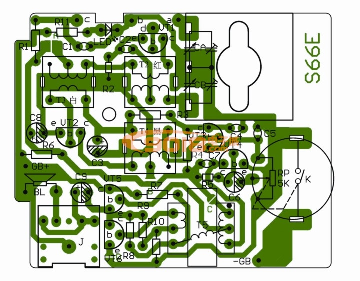 商品特色:S66E型收音機在上海紅燈S66收音機的基礎上進一步完善而成,有二級中放兼檢波電路,采用一支前置輸入變壓器,二支功放三極管9013放大輸出。