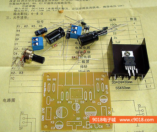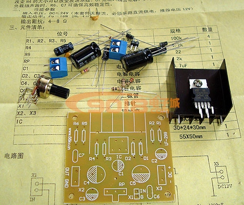 本套件是以集成電路TDA2030A為中心組成的功率放大器,具有失真小、外圍元件少、裝配簡單、功率大、保真度高等特點,很適合無線電愛好者和音響發燒友自制,學生組裝。