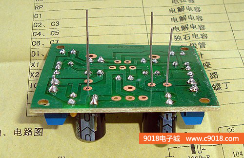9、這兩個電容一個是電源濾波另一個是輸出耦合電容,安裝時要注意正負極,電容裝反了可能會發生爆炸