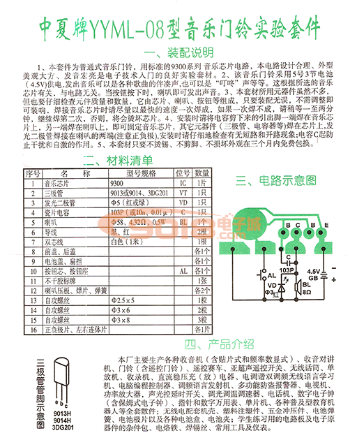 中夏牌YYML08型豪華電子音樂門鈴套件