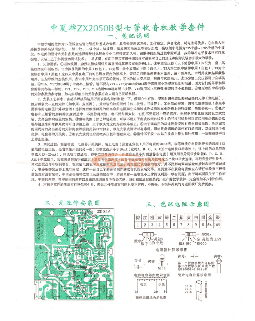 中夏牌ZX2050七管超外差式調幅收音機教學套件