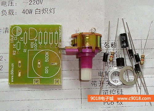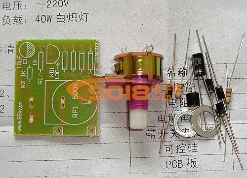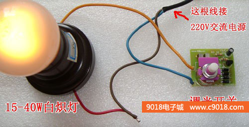 5、通電試驗,接上220V交流電源和40W的白熾燈,調光開關和白熾燈是串聯的,通電后調節電位器的旋鈕,燈泡的亮度就會有相應的變化