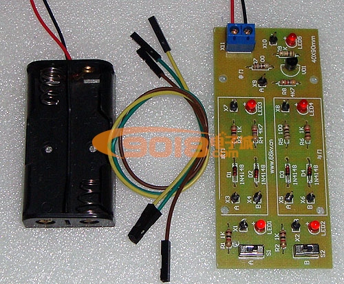 本套件采用二極管、三極管、電阻等分立元件組成與門、或門及非門,采用撥動開關產生一個高電平或低電平,采用發光二極管來指示門電路輸入、輸出電平,電路簡潔直觀。
