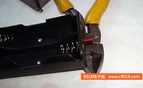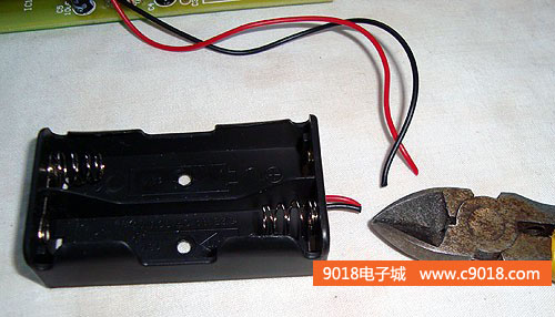 9、把電池盒的引線剪掉一部分留下大約1-1.5厘米長