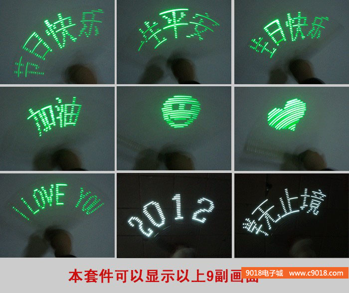 本套件寫好的程序可以顯示以下9幅畫面:(本套件LED顏色為白色)
