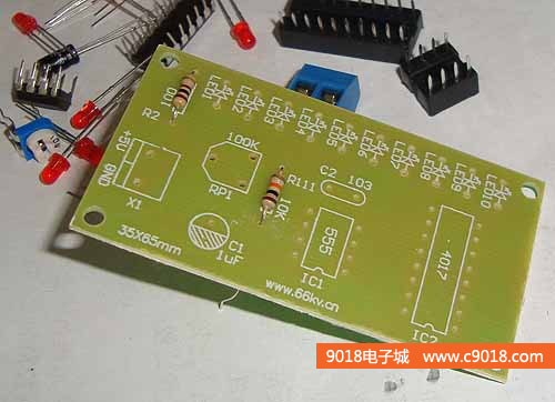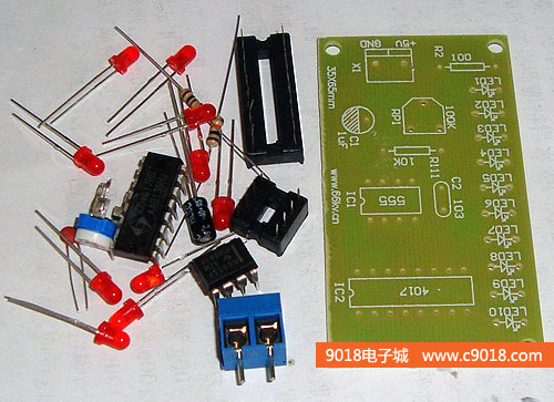 本套件由NE555組成的多諧振蕩器和CD4017十進制計數器/脈沖分配器組成。