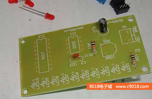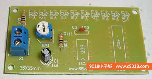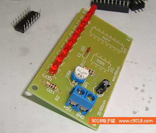 6、最后焊接兩個集成電路插座,裝上555和4017,4017流水燈套件就做好了