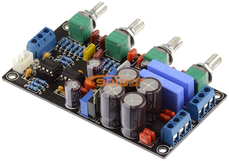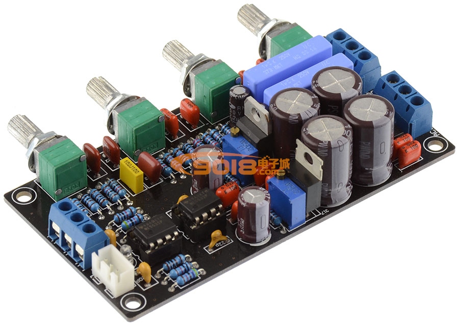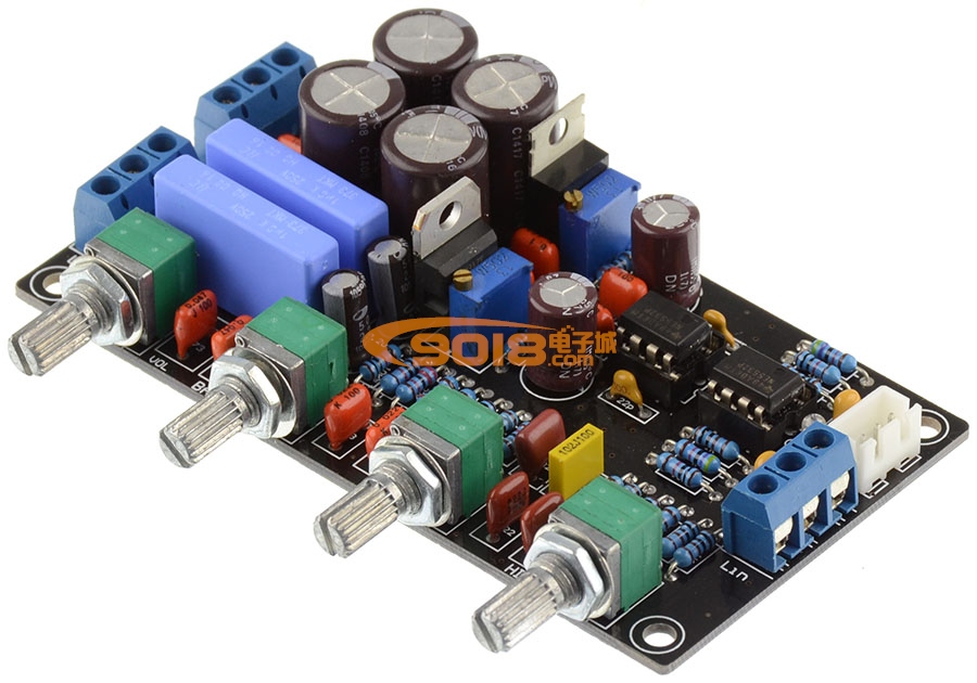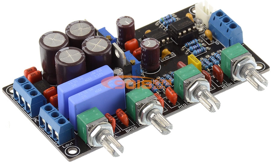2.電位器功能從左到右:音量--低音--中音--高音,電位器間距:24mm