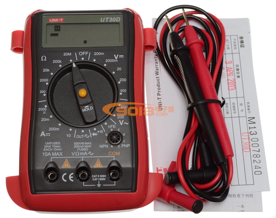 表筆,電池,說明書,保修卡,保護套 |