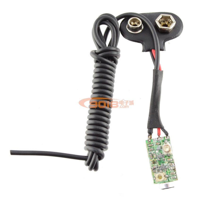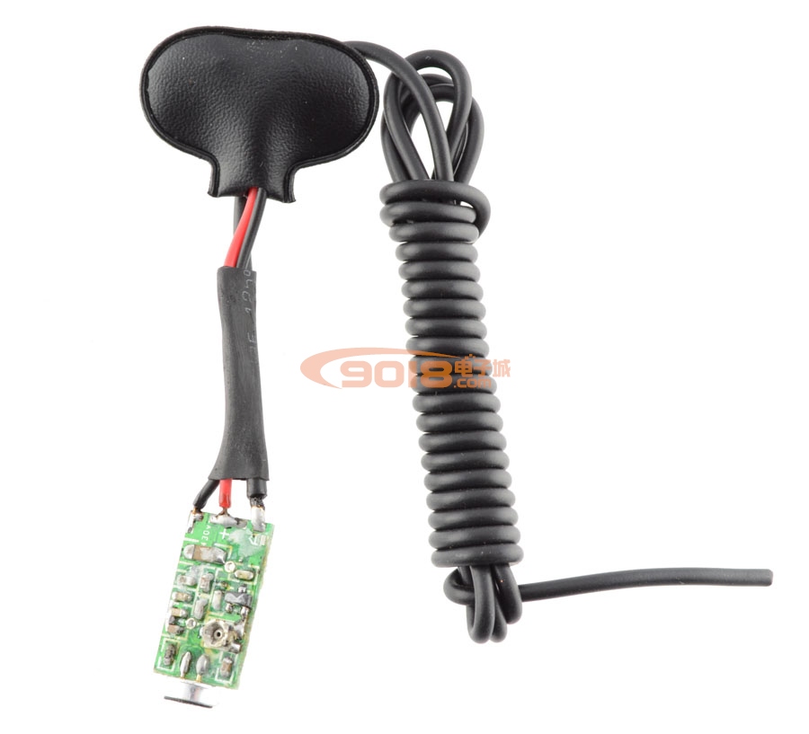 穩定型頻率可調話筒靈敏度可調已接線超微型貼片FM發射片:已焊好電源線和天線的穩定型頻率可調話筒靈敏度可調超微型貼片FM發射片(如圖),套上9V或6V或12V疊層電池即可用。模塊外型尺寸含話筒為:20X10X6mm,電源線長約3cm,天線線長約一米,工作電流6V(20mA),9V(30mA),12V(40mA),耗電非常小但很高效,其參考發射距離在開闊環境下約為1-500米。電壓越高發射距離越遠但耗電也越大。該電路由話筒放大+高頻振蕩+射頻放大構成,除麥克風外全貼片元件電路,工作頻率很穩定,6V時工作電壓變化對其頻率穩定度影響非常小,因人體感應產生的頻漂亦非常小。6V以上頻率穩定度會略差些。話筒靈敏度極高且可調。天線的長度高度和效率直接關系到發射距離,可視實際使用需要而剪裁,建議天線長度75cm。模塊裝入金屬外殼時天線應留出在金屬外殼外,否則發射距離會嚴重減短。本模塊發射頻率可調,默認可調范圍約為100-115MHz,如果調在100-108MHz內,可用普通調頻收音機接收。