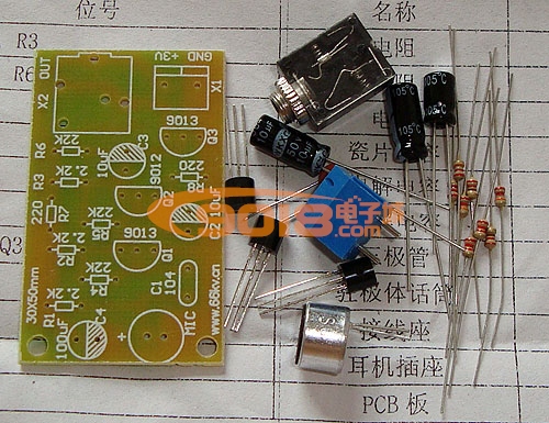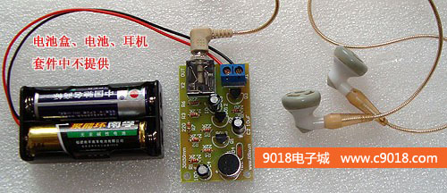 電路組裝好后,外接3V直流電源(可以使用兩節1.5V電池供電),對著駐極體話筒說話,耳機里能聽到宏亮的聲音,可以當做助記器使用,效果很好。