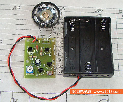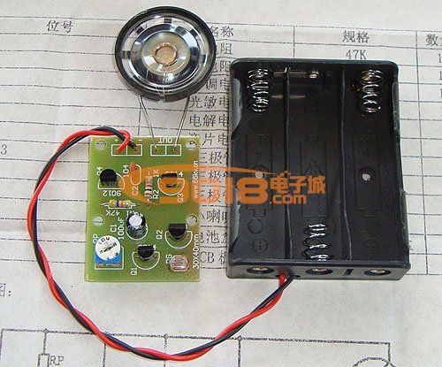10、接上電池盒,紅線為正極,黑線為負(fù)極,這樣熄火報(bào)警器就焊接好了,裝上電池通電實(shí)驗(yàn)就行了