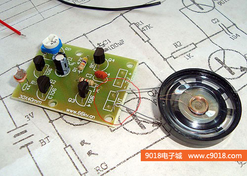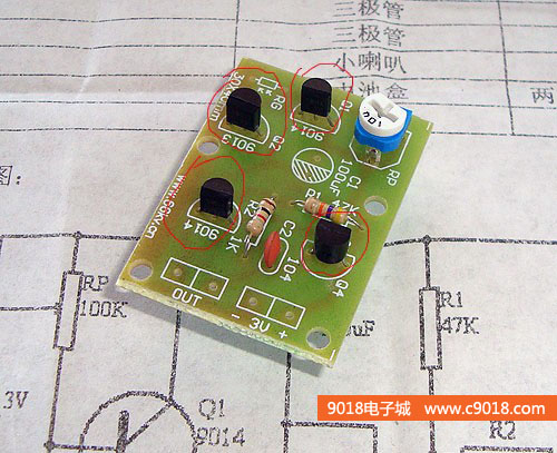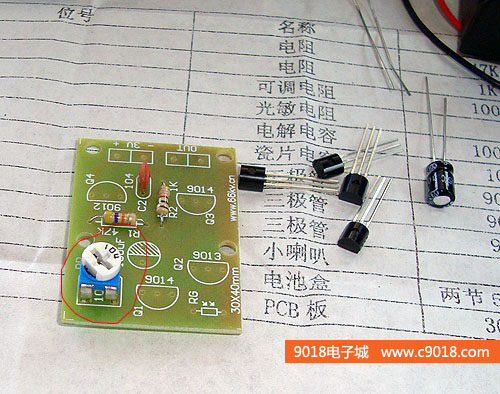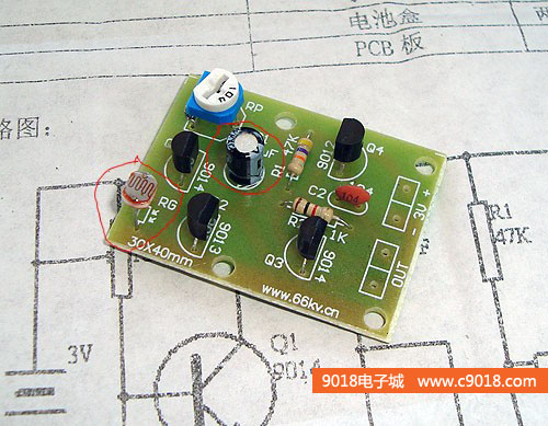 5、最后焊接電解電容和光敏電阻,電解電容要注意正負(fù)極