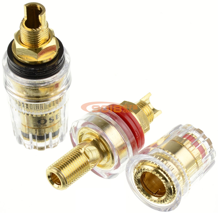 OSEL功放輸出鍍金插座,帶絕緣片,外帶水晶防氧化外套。適用于功放機箱后面輸出座或音箱接線柱。高品質純銅鍍金功放音響音箱,水晶透明接線柱,真材實料、做工精致,接插緊密牢固,功放音箱接線優選產品。